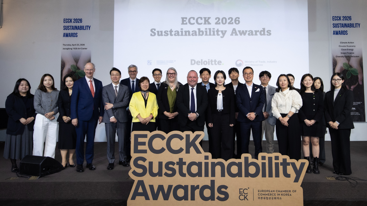 The European Chamber of Commerce in Korea held the ECCK Sustainability Awards on 23 April at Jeongdong 1928 Art Center, with the support of the Ministry of Trade, Industry and Resources (MOTIR) and Deloitte.
