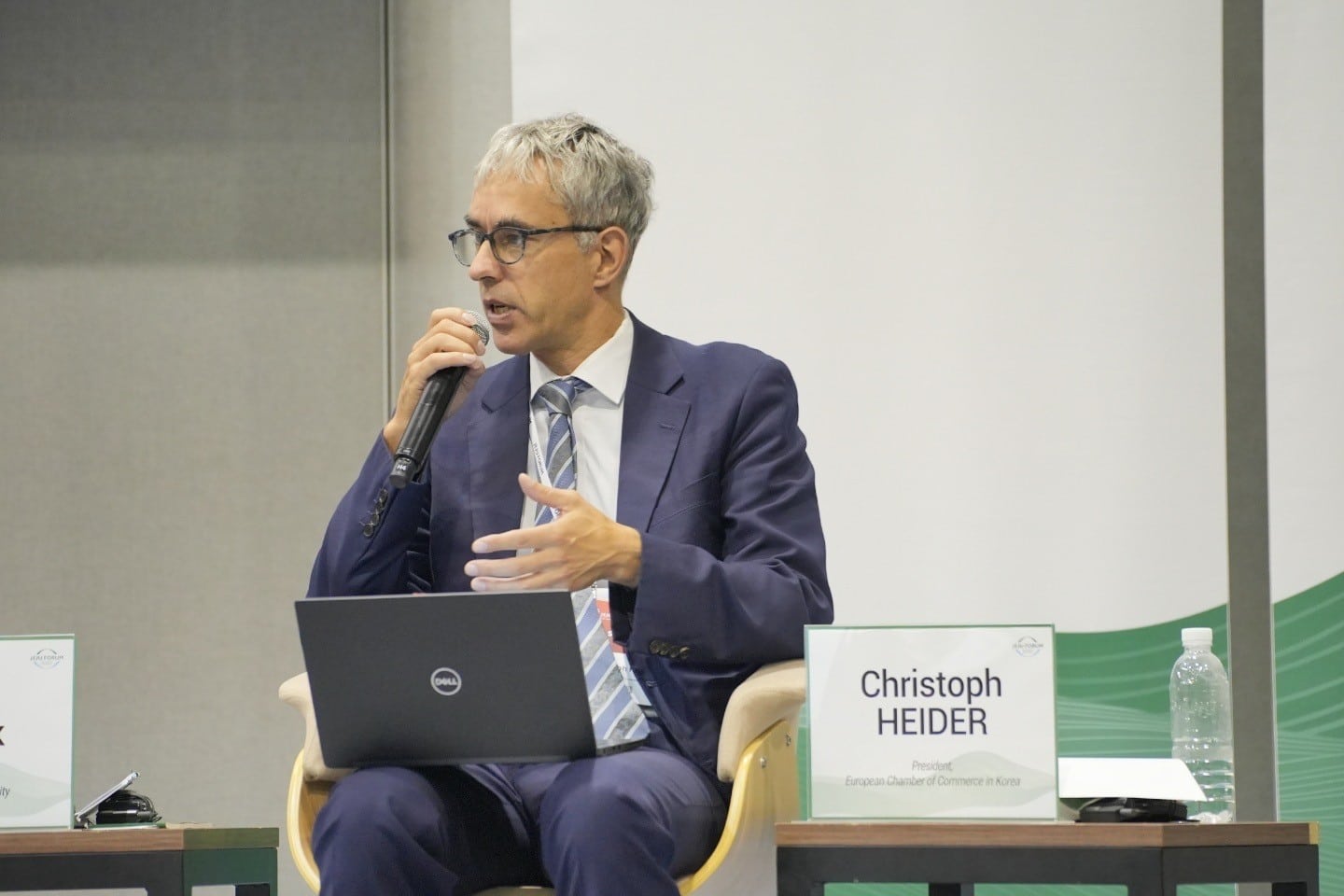 At the event, the ECCK president Christoph Heider participated in a session focusing on “The Future of Korea-EU Strategic Cooperation: Regional Cooperation, Economic Security and Value Diplomacy”. The session was moderated by former Korean Ambassador the European Union and Belgium Kim Chang-beom and included as panelists Maria Castillo Fernandez (Ambassador, European Union), Joanne Doornewaard (Ambassador, the Netherlands), Kim Sihong (Professor, Director and Dean at Hankuk University of Foreign Studies), and Hong Kyu Dok (Professor at Sookmyung Women’s University).