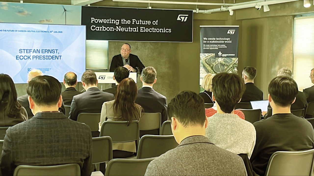 On Wednesday, 28 January, the European Chamber of Commerce in Korea (ECCK) participated in a joint seminar hosted by the Embassy of Italy, the Italian Chamber of Commerce in Korea (ITCCK), and STMicroelectronics, focusing on sustainable semiconductor development under the theme “Powering the Future of Carbon-Neutral Electronics.”