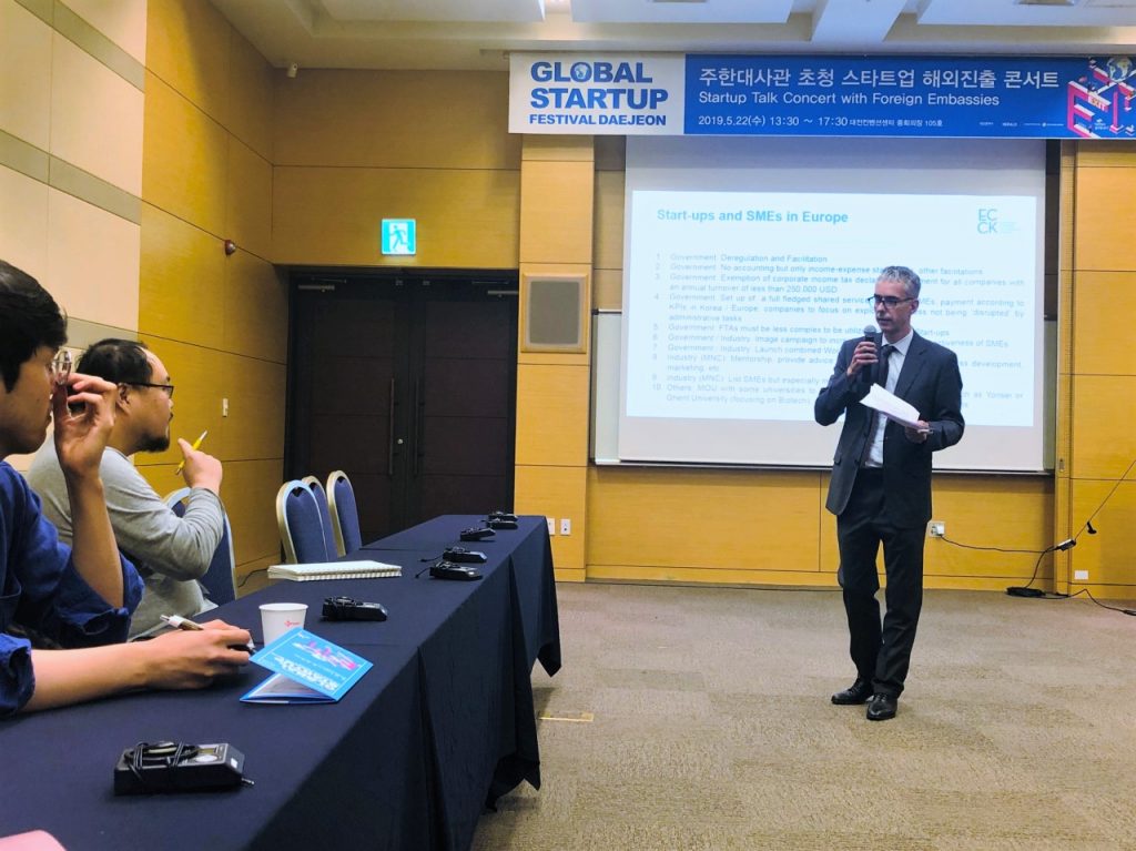 On May 22, ECCK President Christoph Heider spoke about the start-up scene and support programs in Europe at the Global Startup Festival Daejeon 2019. The 3-day conference was hosted by the Daejeon Metropolitan City in cooperation with The Korea Herald.