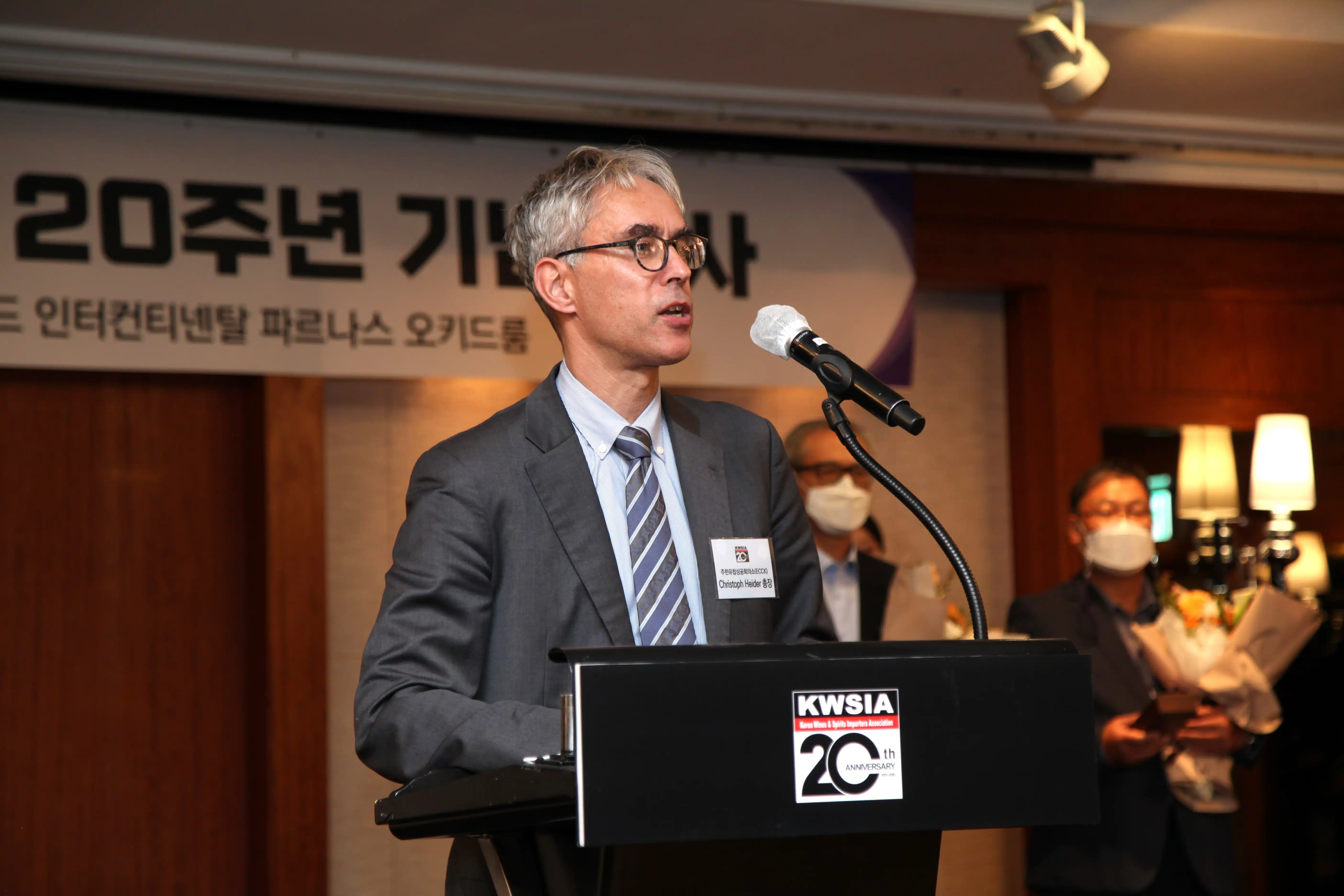 President Heider delivered congratulatory message to KWSIA for 20 years of their excellent service and thanked the Chairman Seung-cheol Ma and the secretariat for all their support in the recent years. Also, he mentioned that both organizations’ relation will further prosper and that together we will continue to work on an improvement of the business landscape for KWSIA and ECCK members.
