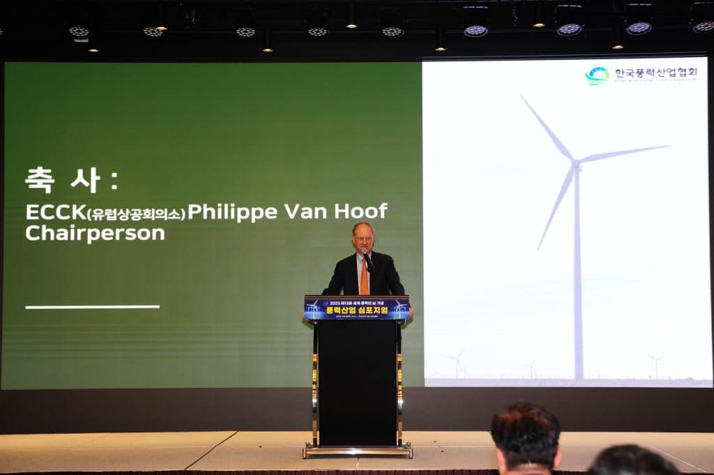 The ECCK Chairperson Philippe Van Hoof, Country Manager of ING Korea, was present and recognised the role of Korea Wind Energy Industry Association for wind power market development between Korean and European wind power industries. In his welcome speech, he also underlined the importance of consistent political support, stable regulatory framework, streamlined permitting procedures, ease of social acceptance and certainty of grid connection.