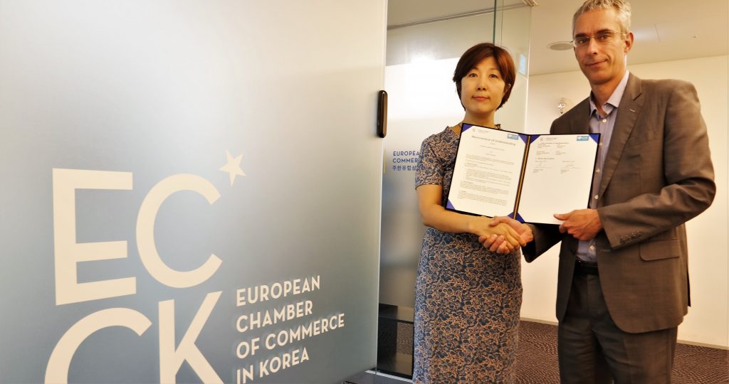 As part of its corporate social responsibility initiative, the ECCK signed a MoU for cooperation in CSR activities with Global Youth Fair (GYF) on July 21. Established in 2015, the GYF is a group consisting of professionals from various industries, provides international exchange programs for children in Korea. Through signing of this MoU, ECCK with GYF look forward to collaborating in supporting the promotion of CSR activities organized by GYF.