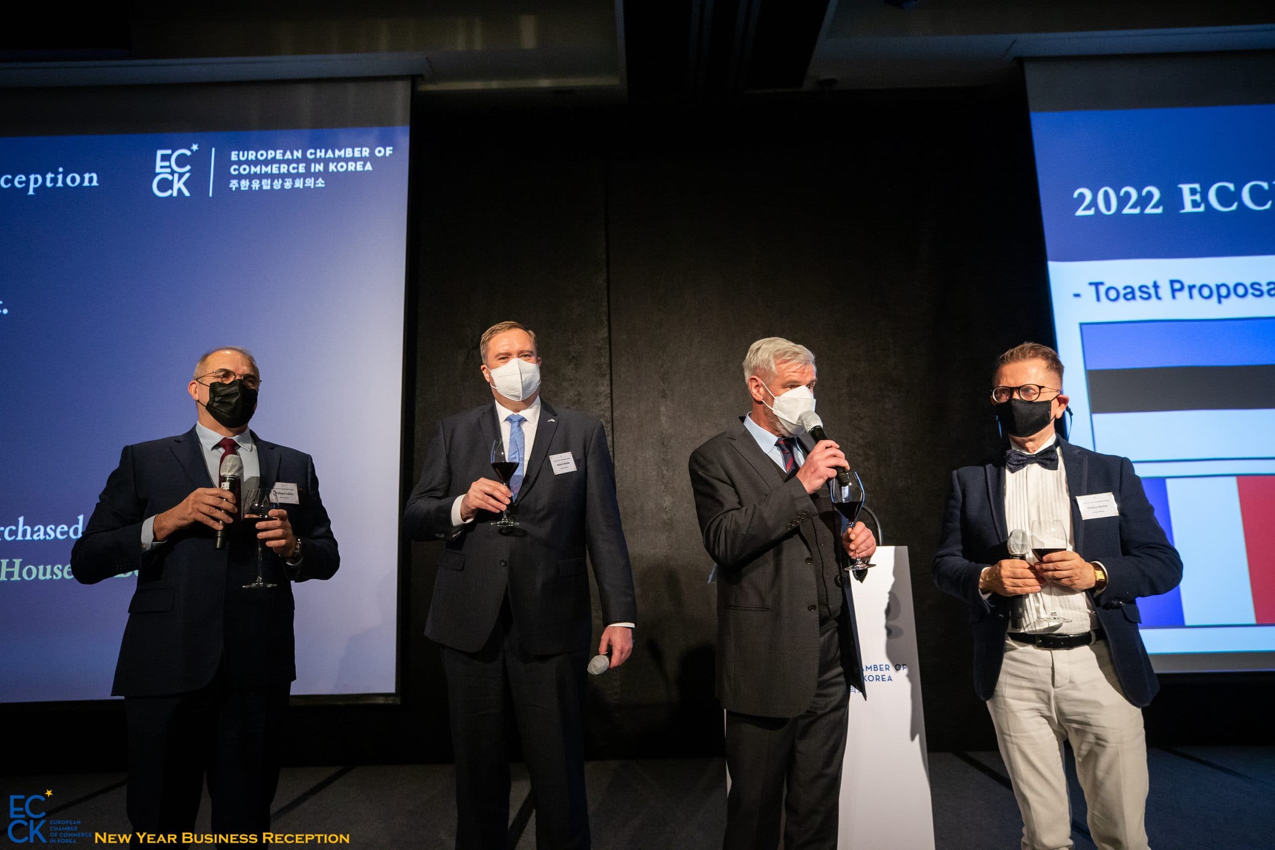 On Friday, January 21, the ECCK New Year Business Reception was successfully hosted. The event was held with the aim to welcome 2022, the year of the tiger and exchange ideas for the new year as business leaders and was joined by distinguished guests from European embassies, Delegation of the EU in Korea, ECCK charity partners, member companies, etc.