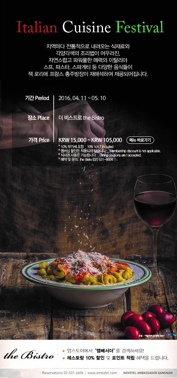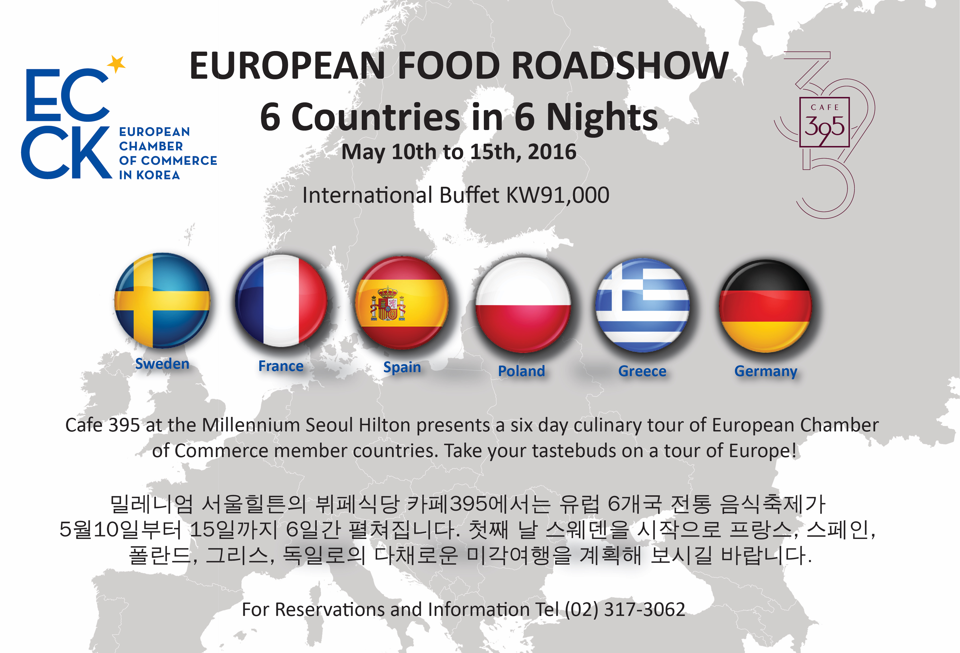 In addition, the ECCK has collaborated with major hotels to introduce European cuisine to Korea during the week. Participating hotels will prepare authentic European dishes for promotion. Hotels and their promotional events are as follows. Please click on each hotel (in alphabetical order) for more information: