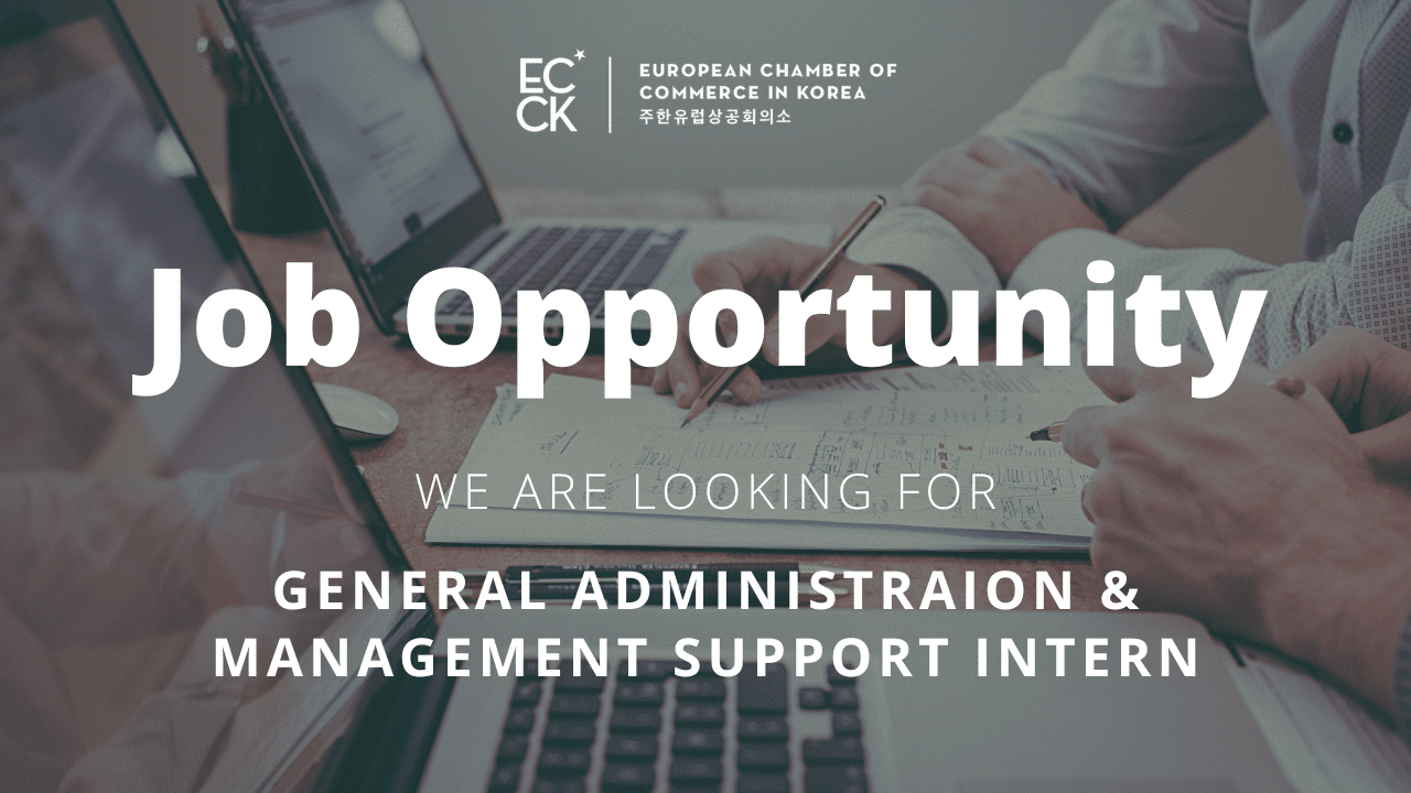 Title: General Administraion & Management Support Intern Location: European Chamber of Commerce in Korea, Seoul Office (Seoul Square, 416 Hangangdae-ro, Jung-gu, Seoul) Application Deadline: September 13, 2023 Contract Period: 1-year contract Working hours : 30 hours per week (10:00 (09:00) to 17:00(16:00) including an hour of lunch time) Job Description 1. Management Support [Scheduling] Internal & External meetings [Reservations] Meeting rooms / Buiseness trip -Flight ,Accomodations/ /Visitor Registration/ Other service Etc [Assistance] Everything about the Korean language [Expense Claims] Reimbursement claims 2. Office Administration [Information] Information Sharing from Builing maintenance team [Phone Calls] Consult with general phone calls for ECCK [Office administration] Office supplies & Refreshment / Clening service arrangment /Parking ticket [Invoices] Process invoices related to office maintenance 3. Coodinate events for ECCK [ECCK event preparation] Worksop/ Townhall meeting (yearly) Requirements Fluency in English and Korean (both oral and written) Proficiency in using MS Office Well -organized and self -motivated Application Procedure Please send your application by email to rk.ro.kcce@reerac by Sep 13, 2023 Application should follow the below: Email Title: Administraion_ Name Cover letter in English & Korean (max. 1 page each) CV in English & Korean (max. 1 page each) All documents to be combined into 1 pdf file for the submission * Late or incomplete applications will not be considered. * Only successful candidate shall be reached out for interview process