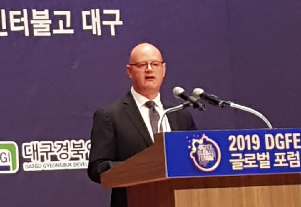 On November 11, ECCK Vice Chairperson Jan Benggaard gave congratulatory remarks at 2019 DGFEZ Global Forum held at Inter-Burgo Hotel in Daegu.