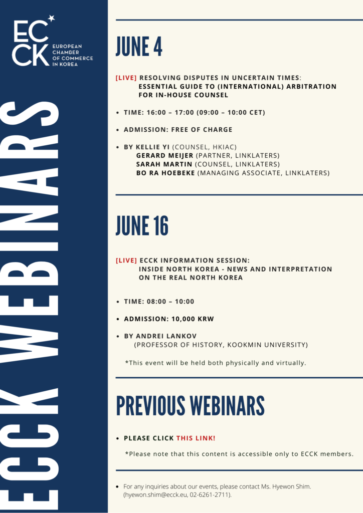 Webinar Inquiries: ECCK Events Team ( E: rk.ro.kcce@mihs.noweyh ; T: +82.2.6261.2711)