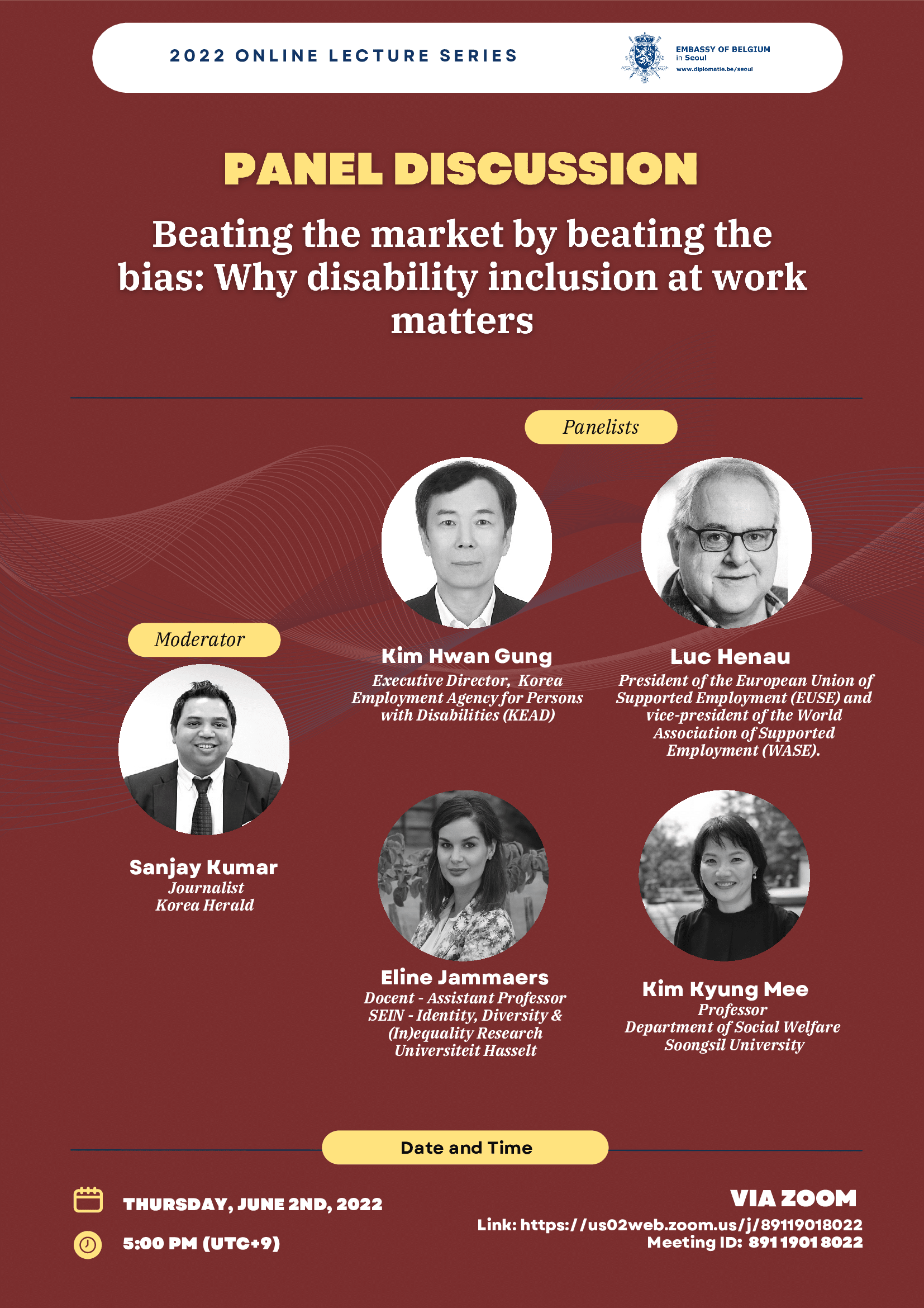 [Embassy of Belgium in Seoul] Online Panel Discussion on Beating the market by beating the Bias: Why disability inclusion at work matters