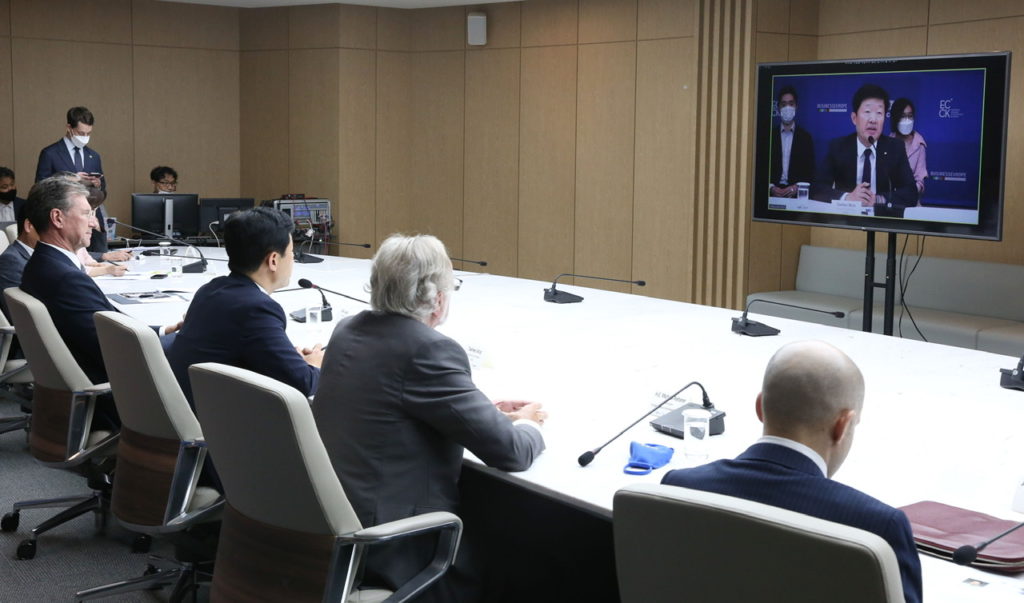 ECCK hosted ‘EU-Korea Virtual Business Conference 2020’ in cooperation with the Korea Chamber of Commerce and Industry (KCCI) and BusinessEurope on July 2 at the KCCI Executive Conference Hall.