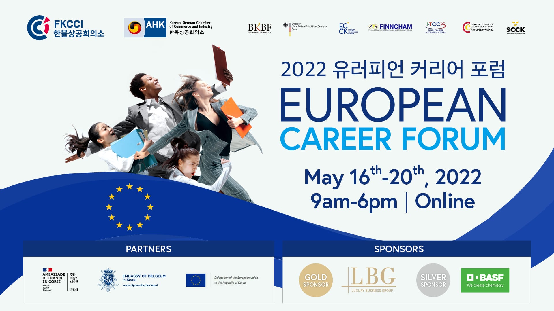 Join us from May 16th to 20th for the online European Career Forum 2022 to find opportunities and boost your career in the European-Korean business community across all sectors of activities!