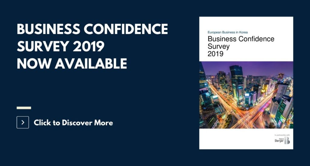 European national chambers and business councils in Korea released the results of Business Confidence Survey 2019 on March 2, 2020. European company executives, representing over 53,000 employees and a total turnover of EUR 40 billion, participated in this year’s survey.
