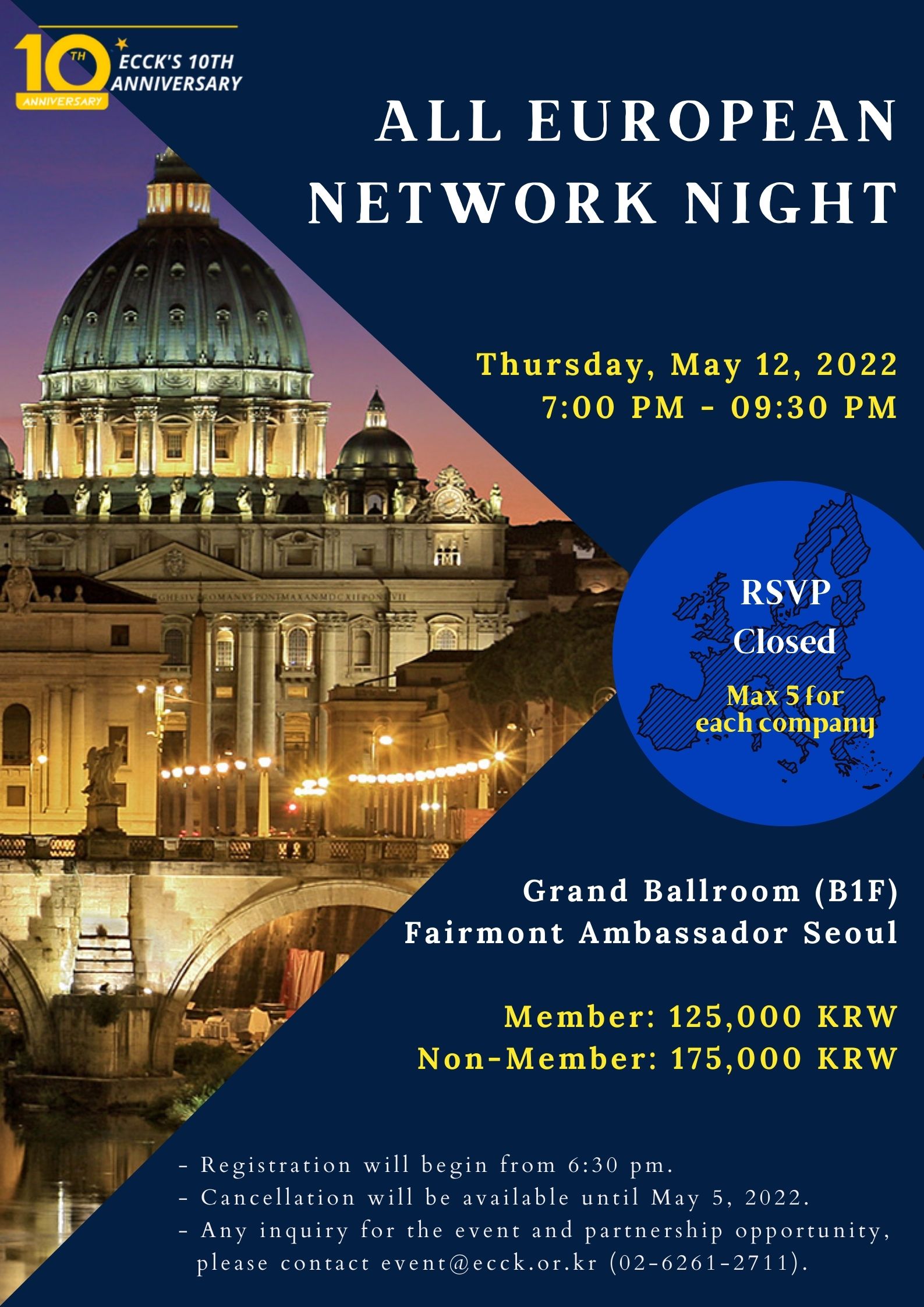 may 2022 12may7:00 PM9:30 PMAll European Network Night (Registration Closed)ECCK Events:ECCK Event Details* Kindly be informed that the registration is now closed as we have reached our full capacity for the event. Thank you all for your interest. Event Details * Kindly be informed that the registration is now closed as we have reached our full capacity for the event. Thank you all for your interest. Partnership proposal_All European Network Night 0512 Time(Thursday) 7:00 PM - 9:30 PM CalendarGoogleCal