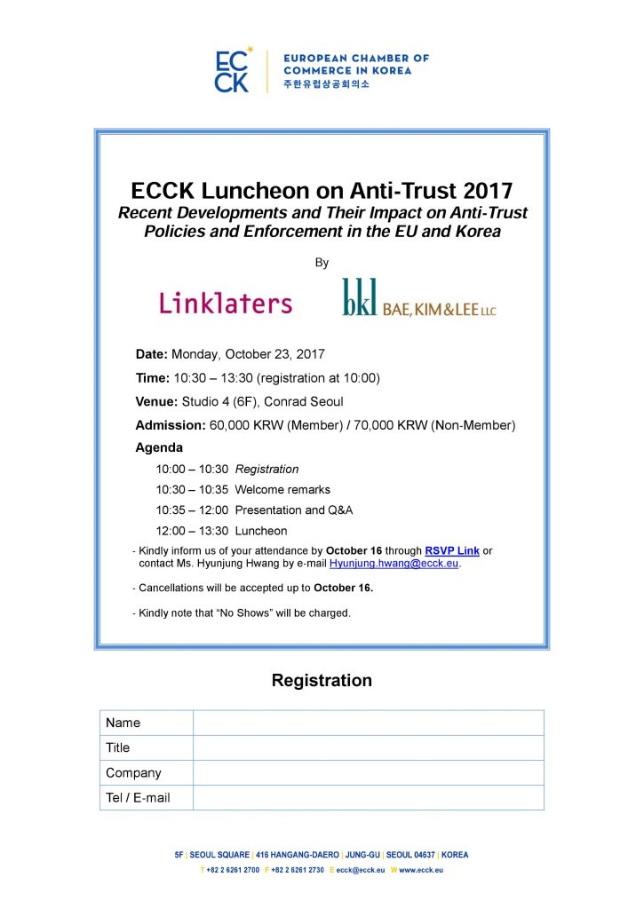 october 2017 11oct7:39 AM7:39 AMAnti-Trust Luncheon 2017 Event DetailsLuncheon on Anti-Trust_1023 Event Details Luncheon on Anti-Trust_1023 Time (Wednesday) 7:39 AM - 7:39 AM LocationConrad Seoul10 Gukjegeumyung-ro, Yeoeuido-dong, Yeongdeungpo-gu, Seoul CalendarGoogleCal