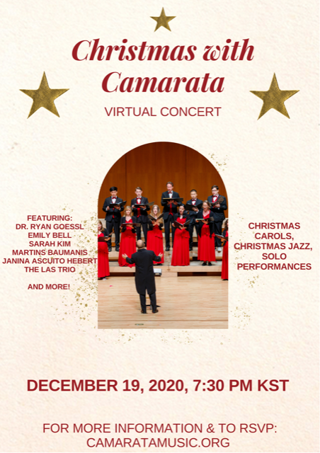 december 2020 19dec7:30 PMChristmas with Camarata Virtual ConcertExternal Events:External Events Event Details★ For more information please visit camaratamusic.org ★ Event Details ★ For more information please visit camaratamusic.org ★ Time(Saturday) 7:30 PM CalendarGoogleCal