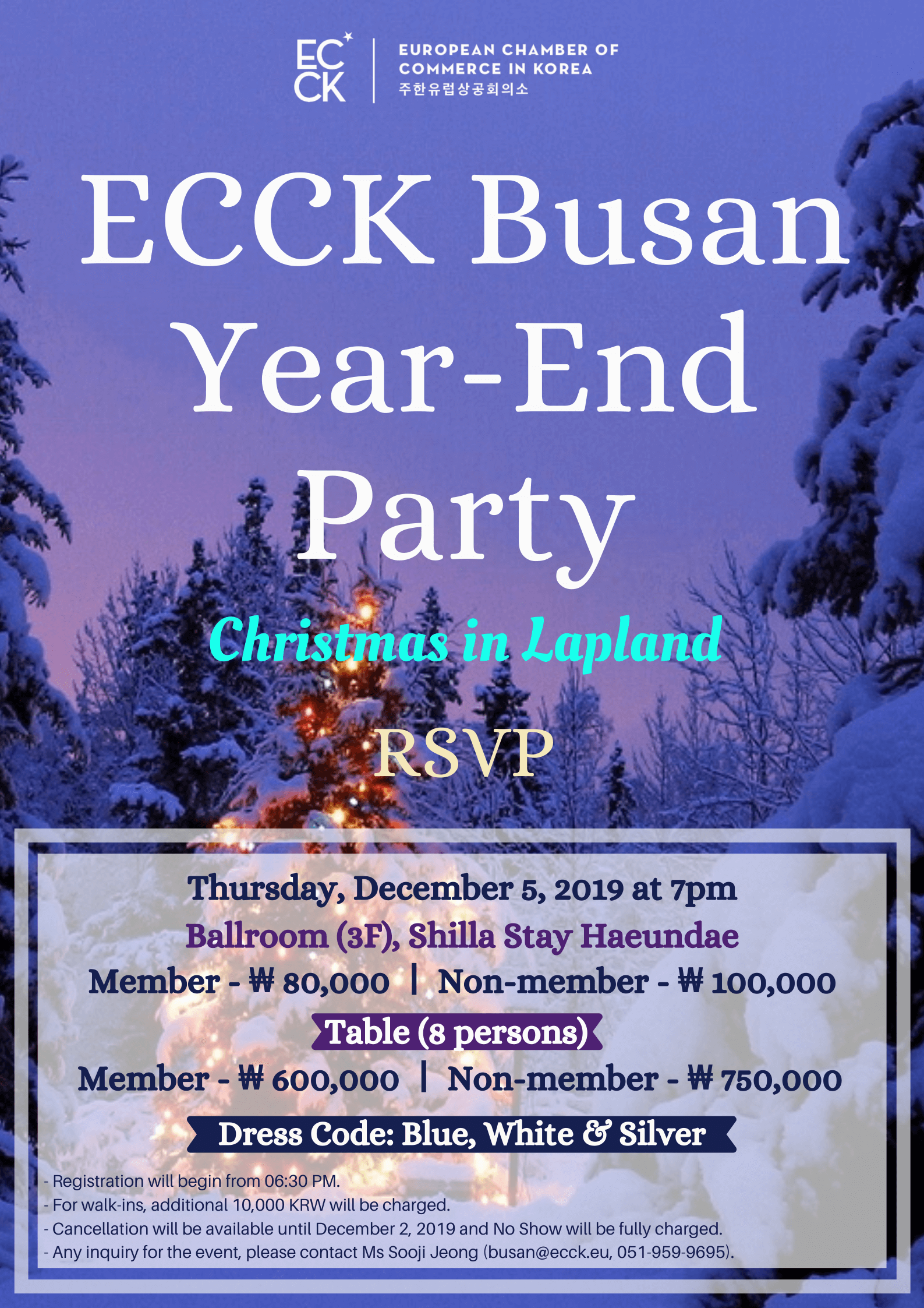 december 2019 05dec7:00 PM9:30 PMECCK Busan Year-End PartyECCK Events:ECCK Busan Event Details*RSVP Closed! If you have inquiry for the event, please contact Ms. Sooji Jeong (051-959-9695, rk.ro.kcce@nasub) Event Details *RSVP Closed! If you have inquiry for the event, please contact Ms. Sooji Jeong (051-959-9695, rk.ro.kcce@nasub) Invitation_ECCK Busan Year-End Party_Dec 5 Partnership Proposal_ECCK Busan Year-End Party_Dec 5 Time (Thursday) 7:00 PM - 9:30 PM LocationBall Room(3F), Shilla Stay Haeundae46, Haeun-daero 570beon-gil CalendarGoogleCal