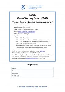june 2017 15jun4:00 PM6:00 PMECCK Green Working Group SeminarECCK Events:ECCK Event DetailsKindly note this seminar is fully booked! Click here to see and download the invitation. Event Details Kindly note this seminar is fully booked! Click here to see and download the invitation. Time(Thursday) 4:00 PM - 6:00 PM CalendarGoogleCal