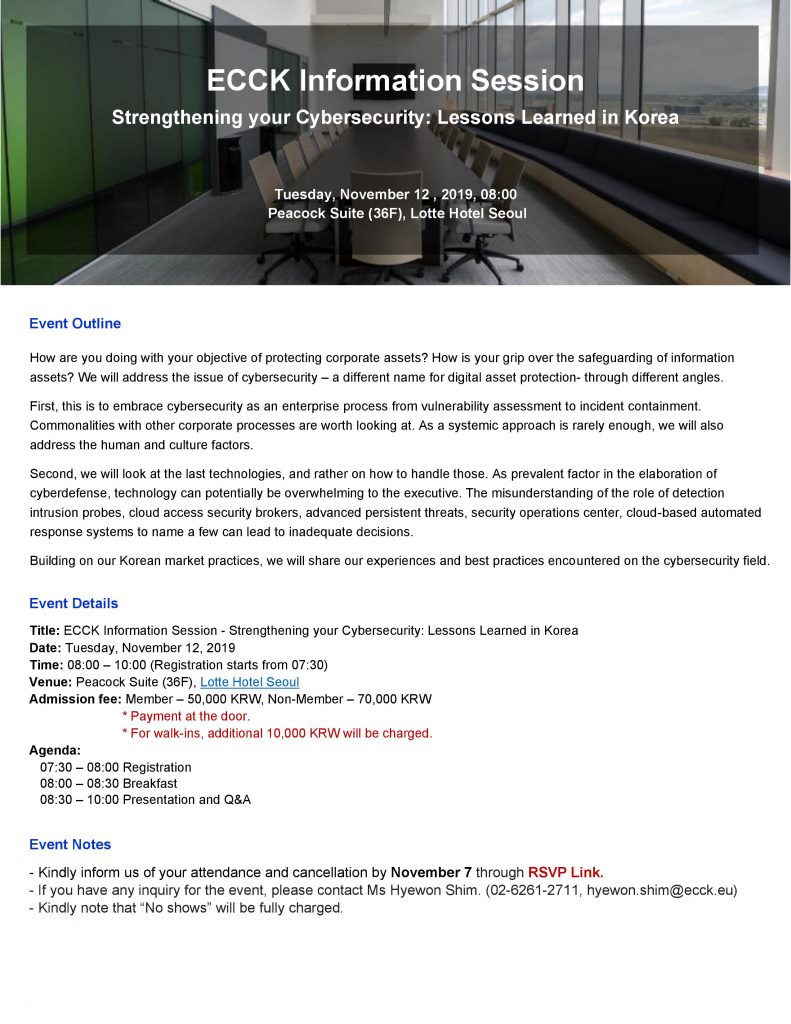 RSVP Closed. If you have any inquiry for the event, please contact Ms Hyewon Shim. (02-6261-2711, rk.ro.kcce@mihs.noweyh) Invitation_ECCK Information