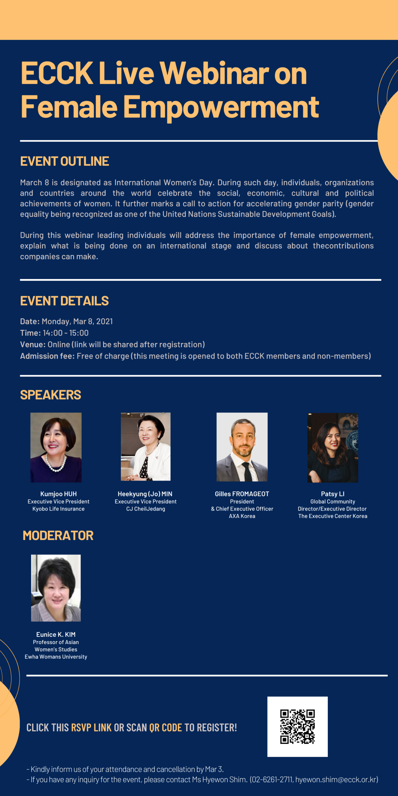 march 2021 08mar2:00 PM3:00 PMECCK Live Webinar on Female EmpowermentECCK Events:ECCK Event Details RSVP Closed! ECCK Webinar on Female Empowerment_Invitation Event Details RSVP Closed! ECCK Webinar on Female Empowerment_Invitation Time(Monday) 2:00 PM - 3:00 PM CalendarGoogleCal