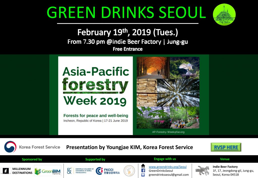 february 2019 19feb7:30 PM10:00 PM[External] Green Drinks SeoulExternal Events:External Events Event Details RSVP Link Event Details RSVP Link Time (Tuesday) 7:30 PM - 10:00 PM LocationIndie Beer Factory17, Jeongdong-gil, Jung-gu, Seoul, Korea 04518 CalendarGoogleCal