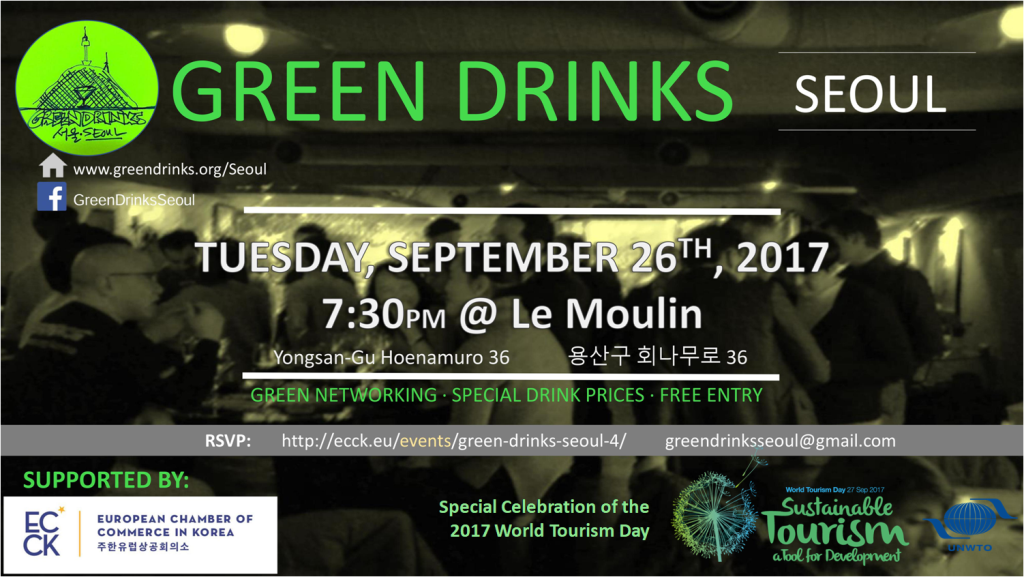 september 2017 26sep7:30 PM9:30 PMEvent OverGreen Drinks SeoulECCK Events:ECCK RSVP NowRSVPing is closed at this time. Can not make it to this event?Change my RSVP Event Details Event Details Time(Tuesday) 7:30 PM - 9:30 PM CalendarGoogleCal