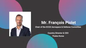 The ECCK is pleased to announce the election of Mr. François Piolet, Country Director & CEO of Thales Korea, as the new Chair of its Aerospace & Defense Committee. His term officially begins from Monday, March 24, 2025.