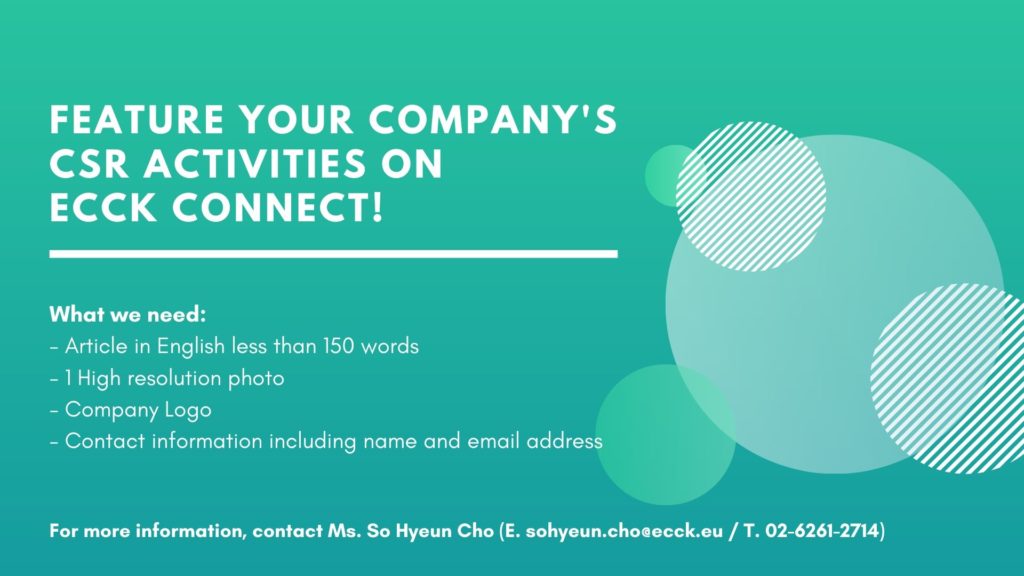 From Summer 2020, the ECCK’s quarterly digital magazine ECCK Connect will start a new section dedicated to featuring our member companies’ corporate social responsibility (CSR) activities.