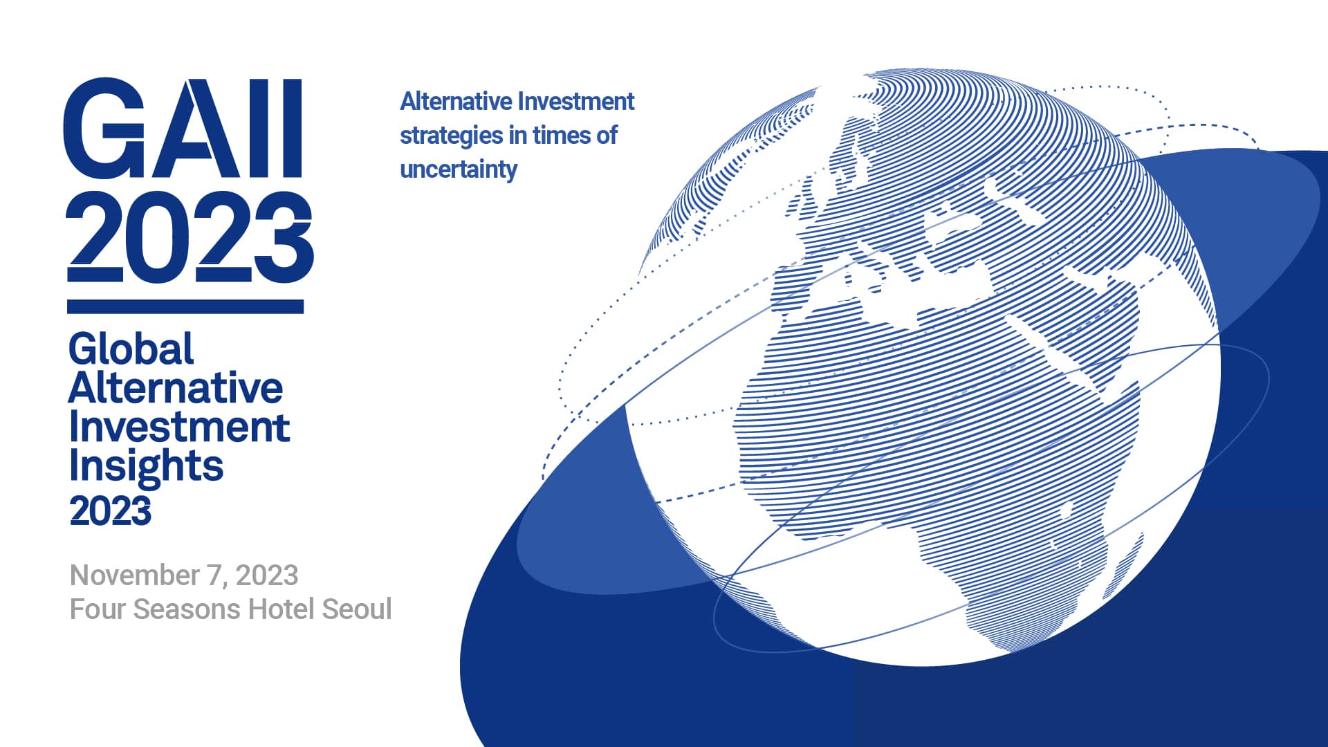 The ECCK is pleased to inform you that Global Alternative Investment Insights (GAII) 2023 Conference will be held at Four Seasons Hotel Seoul on November 7, 2023, co-hosted by Maekyung Media Group and the European Chamber of Commerce in Korea. We offer our immense gratitude for your continued support for the annual GAII conference.