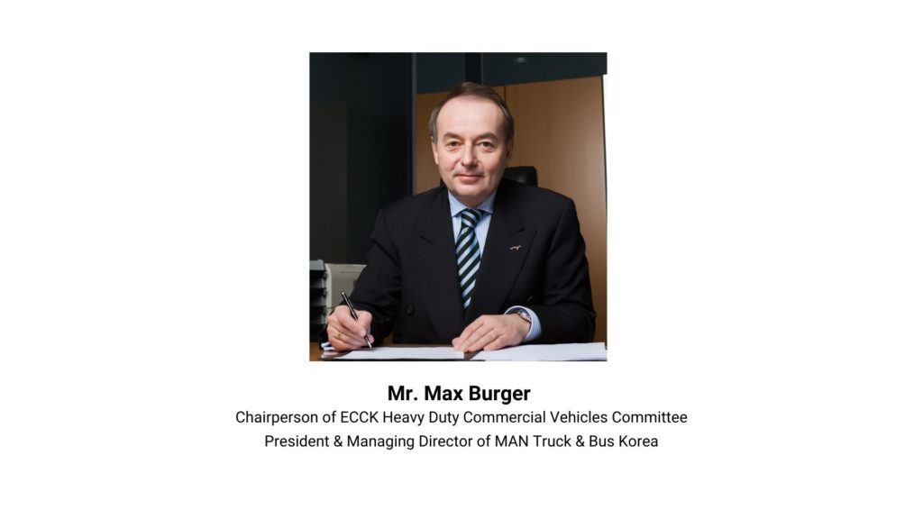 ECCK is pleased to announce that President & Managing Director of MAN Truck & Bus Korea Mr. Max Burger has been reappointed as the Chairperson of the Heavy Duty Commercial Vehicles (HDCV) Committee.