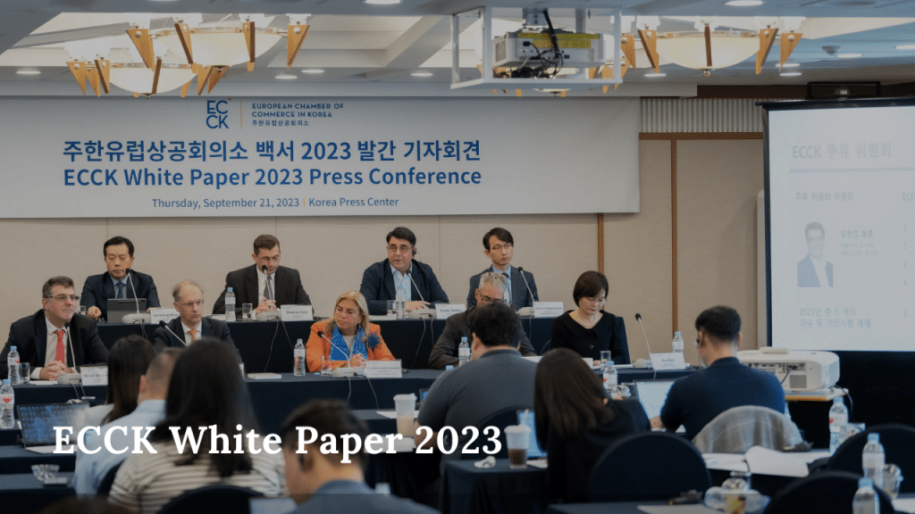 The ECCK White Paper 2023 outlines 100 issues and corresponding recommendations presented to the Korean government, aiming to enhance the business environment in Korea. These recommendations have been carefully crafted through extensive consultations with our European members actively participating in our 17 industry committees.