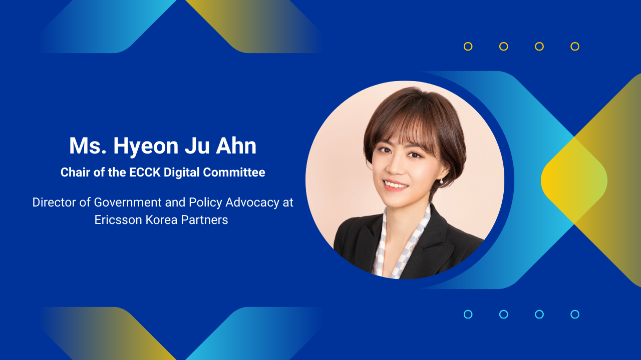ECCK is pleased to announce that Ms. Hyeon Ju Ahn, Director of Government and Policy Advocacy at Ericsson Korea Partners, has been elected as the new Chair of the ECCK Digital Committee. Ms. Ahn will serve a two-year term as Chair, effective from March 17, 2026.