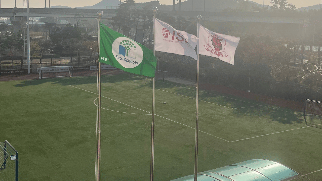 The International School of Busan (ISB) has been officially awarded the Green Flag Award for its ongoing commitment to environmental sustainability. In order to achieve this award, members of the ISB community went through a rigorous application process followed by the development and implementation of a multi-step action plan to achieve their goals. The progress that the school has made was assessed during a Green Flag Assessment Visit led by members of the Foundation for Environmental Education (FEE). On November 7th, ISB received the official certification and plaque, which is now proudly displayed at the front of school.