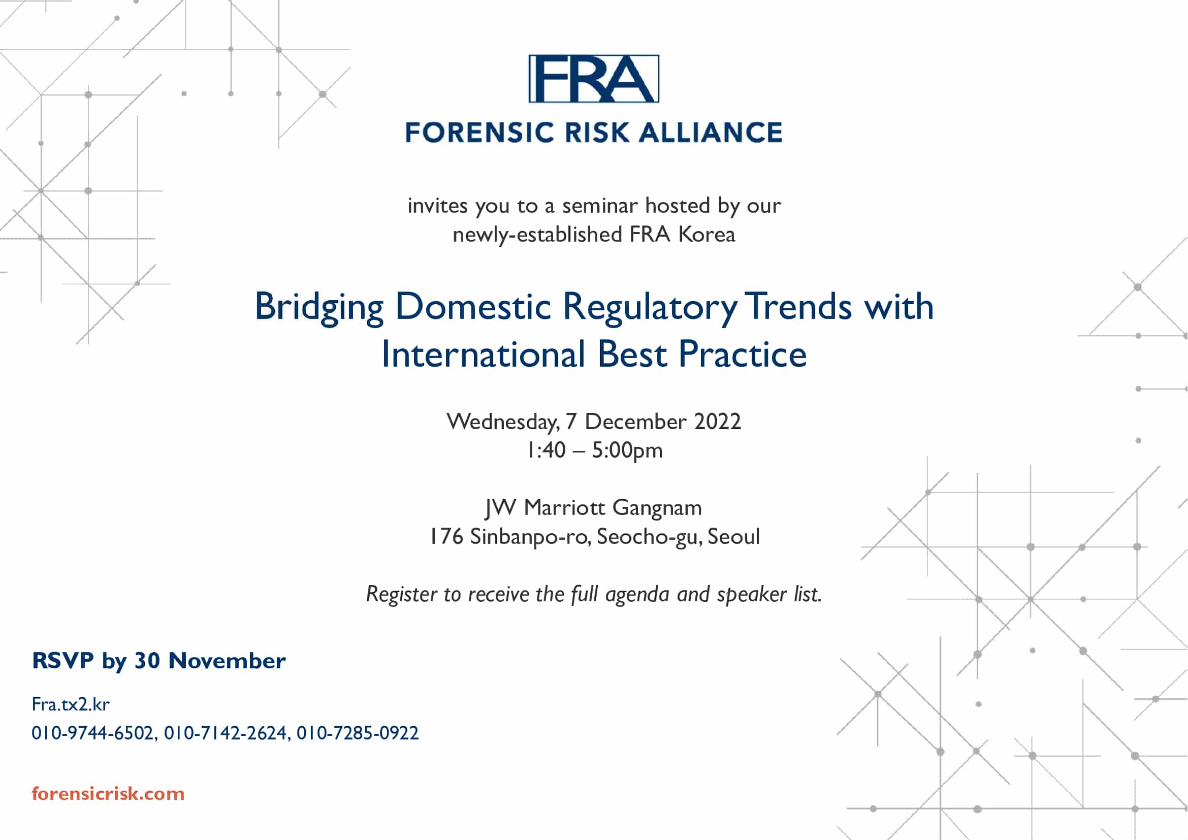 Invitation to a Launch Seminar with Forensic Risk Alliance (FRA) Korea