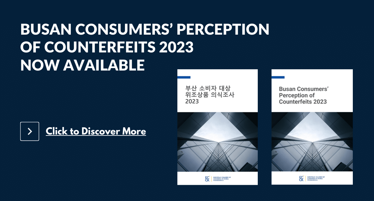 On May 20, 2023, the ECCK participated in the Busan Global Gathering and throughout the event the IPR(Intellectual Property Rights) Committee conducted a campaign to promote the importance of intellectual property. Moreover, the survey was carried out as part of an ongoing campaign and measure the public perception of counterfeits. The survey consisted of 12 questions and was completed by more than 500 people. All survey responses have now been compiled into a report titled “Busan Consumers’ Perception of Counterfeits 2023”. The full report can be found at this LINK.