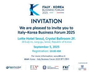 Registration for the Forum is possible here: Italy – Korea Business Forum 2025 Registration
