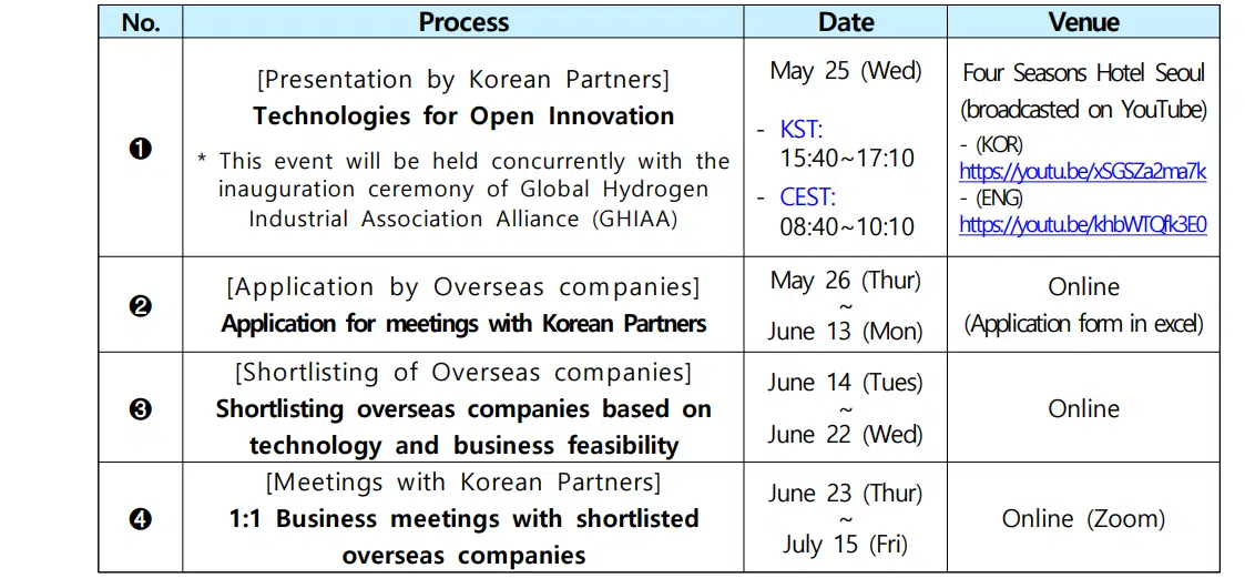 Purpose: Fostering H2 industry value chains through matchmaking Korean partners and overseas companies