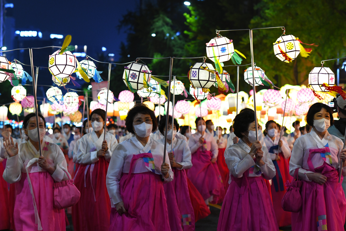 The highlight that attracts hundreds of thousands of visitors from home and abroad to the city of Seoul is the lantern parade. At 7 p.m. in the evening, as the city sinks into darkness, thousands of lanterns light up downtown Seoul in a three-kilometer-long parade that concludes at Jogyesa Temple.