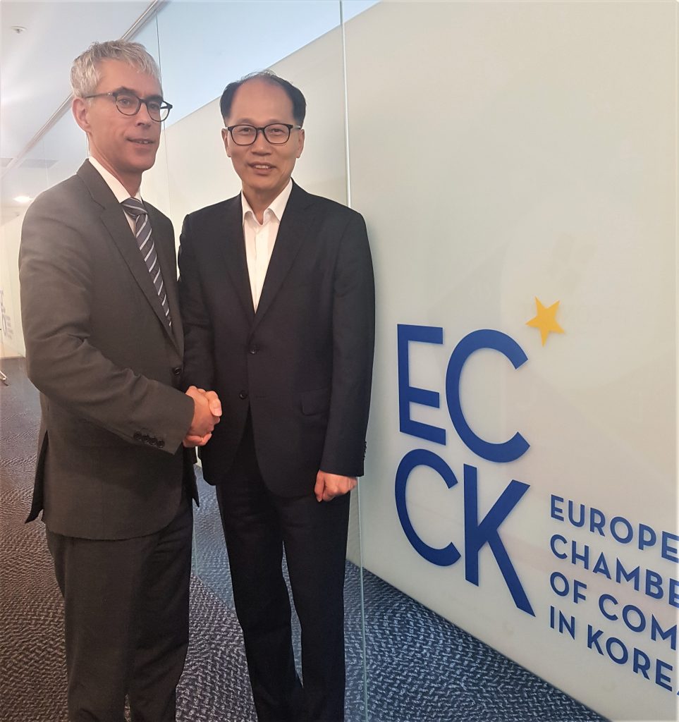 On September 17, ECCK President Christoph Heider and Vice President Bo Sun Kim met with the Yellow Sea Free Economic Zone (YESFEZ) Commissioner Seong Tae Hwang in the ECCK’s meeting room.