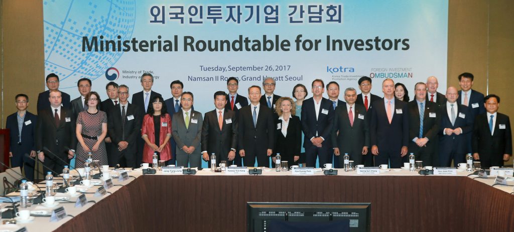 Ministry of Trade, Industry and Energy Minister Paik Un Gyu hosted ‘Ministerial Roundtable for Investors’ in the morning of September 26. The meeting was attended by business leaders from foreign chambers of commerce in Korea including ECCK Vice Chairman André Schmidtgall and President Christoph Heider. During the roundtable, Minister Paik discussed about the new economic policies and exchanged inquiries and suggestions with the heads of foreign business groups. The roundtable was foreign businesses’ first official encounter with Minster Paik after his appointment as MOTIE Minister.