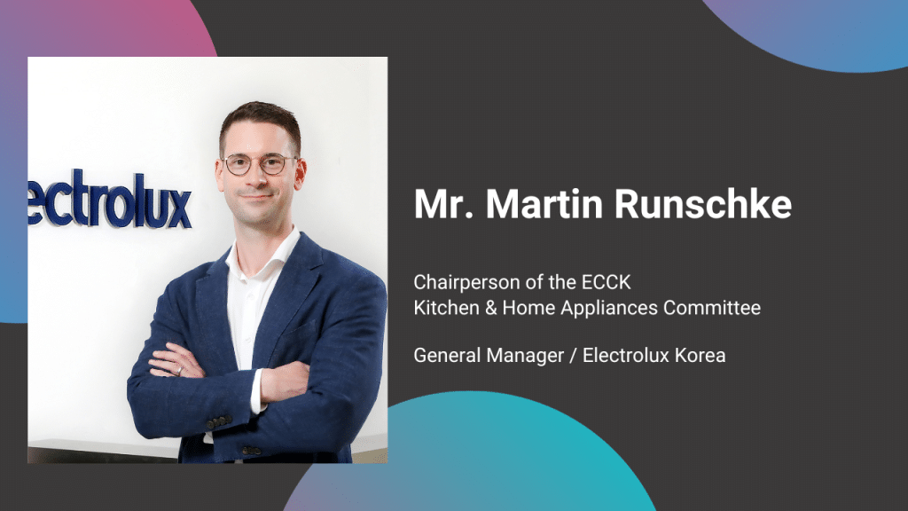 The ECCK is pleased to announce that, Mr. Martin Runschke, General Manager, Electrolux Korea has been elected as the Chairperson of the ECCK Kitchen & Home Appliance Committee. Mr Runschke will serve a two-year term as the Committee Chairperson from January 1, 2024 to December 31, 2025. We would like to sincerely congratulate Mr. Runschke and look forward to his leadership for the committee!