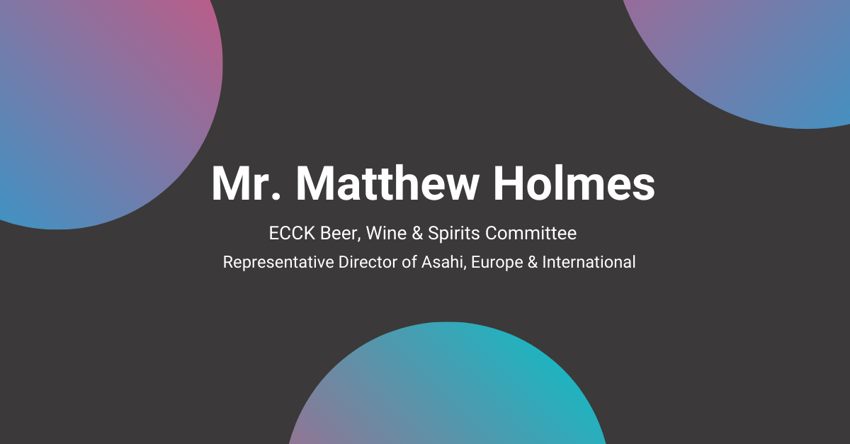 The ECCK is pleased to announce that, Mr. Matthew Holmes, Representative Director of Asahi, Europe & International, has been elected as the new Chairperson of the ECCK Beer, Wine & Spirits Committee.