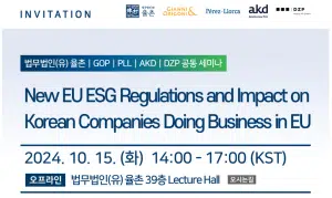 In response to these developments, ECCK’s esteemed member, Yulchon LLC, will host a seminar to provide practical insights into key regulations that may directly or indirectly affect Korean entities. Experts from various EU countries, including the Benelux region, Spain, Italy, and Poland, will offer a detailed overview of the EU’s ESG framework and the specific applications of these regulations in their respective jurisdictions.