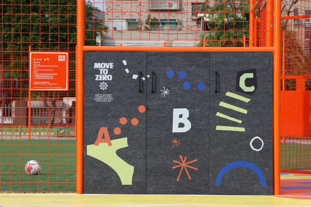 Through Recycle and Donation program with Nike’s Move to Zero journey, part of the playground’s materials are made up of Nike’s end-of-life footwear and apparel product, donated by consumers. The donated products have been given a new life by Nike Grind as storage bins and chips integrated onto the ground, showcasing Nike’s efforts in sustainability to protect the future of sport.