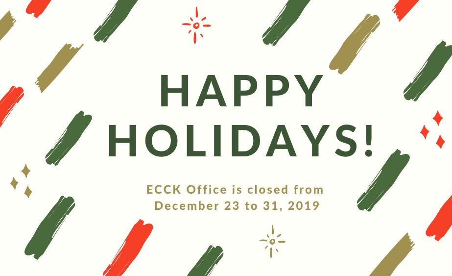 The ECCK Seoul office will be officially closed from December 23 to 31, 2019 and Busan office from December 18 to 31, 2019. Regular office hours will resume on Thursday, January 2, 2020.