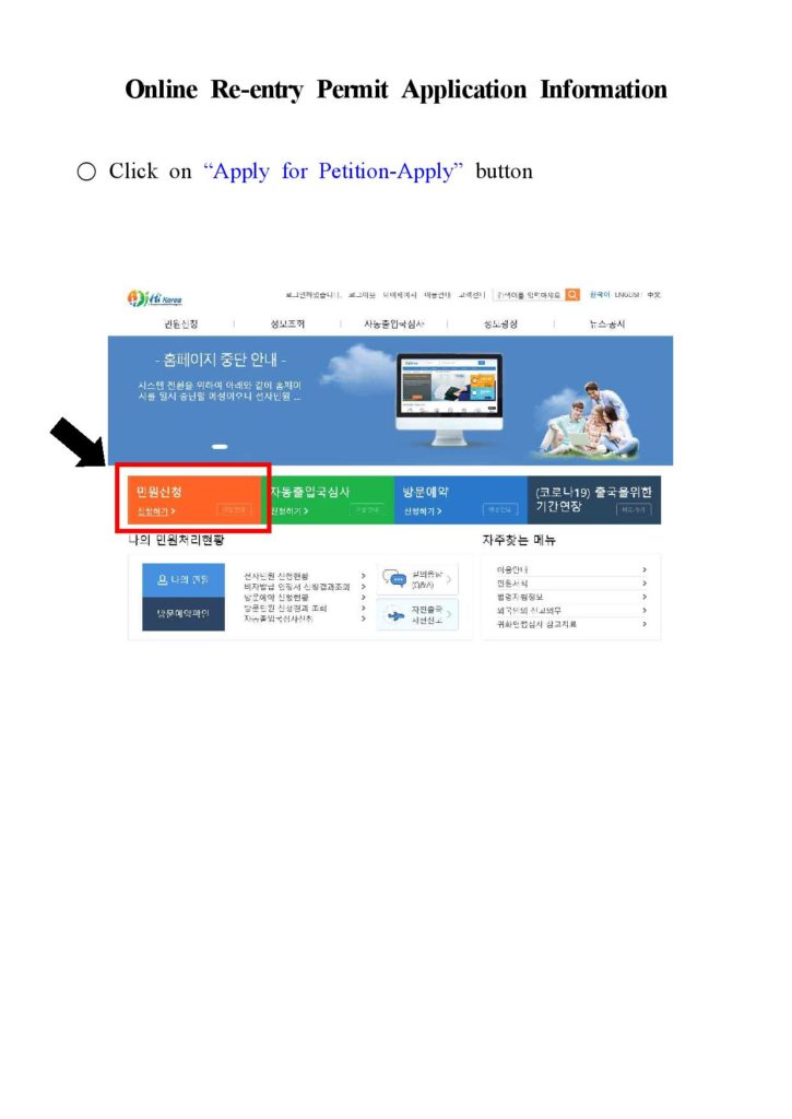 ○ If click on re-entry permit (company, coverage, academic special) is clicked: Scan and upload business orders, reason for application, business registration certificate, certificate of employment (certificate of employment) → application → payment of fees (only for eligible persons)