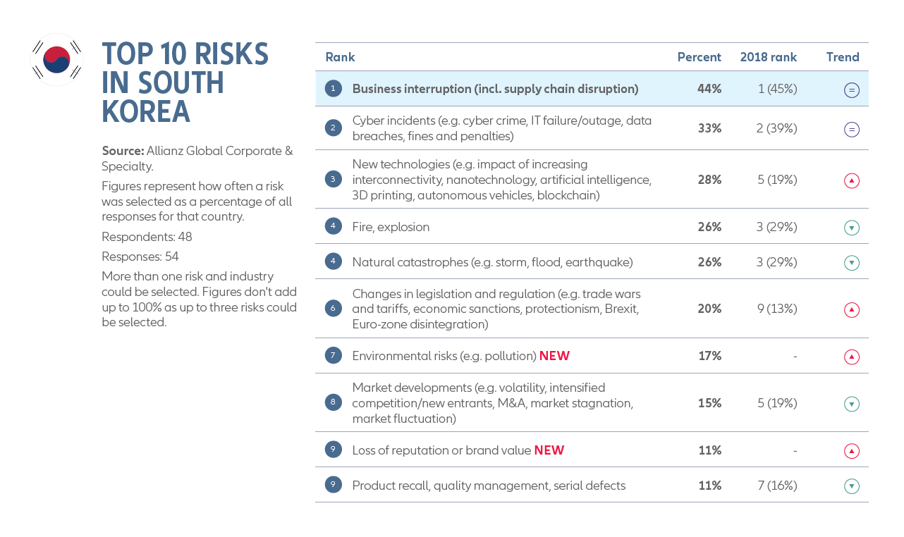 For your reference, below is the 2019 Allianz Risk Barometer version as well as KOREA specific risk-concerns.