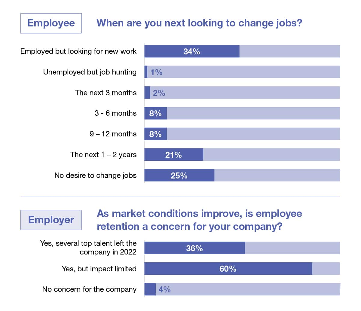 54% of professionals surveyed say they plan to change jobs by the end of 2023, with 34% already looking for a new opportunity to move jobs.