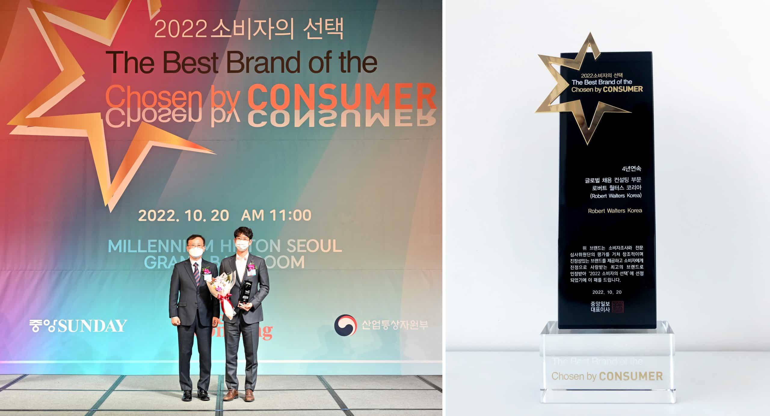 Robert Walters Korea Won the Consumer Choice Award 2022 in the Global Recruitment Consulting Category for the Fourth Consecutive Year