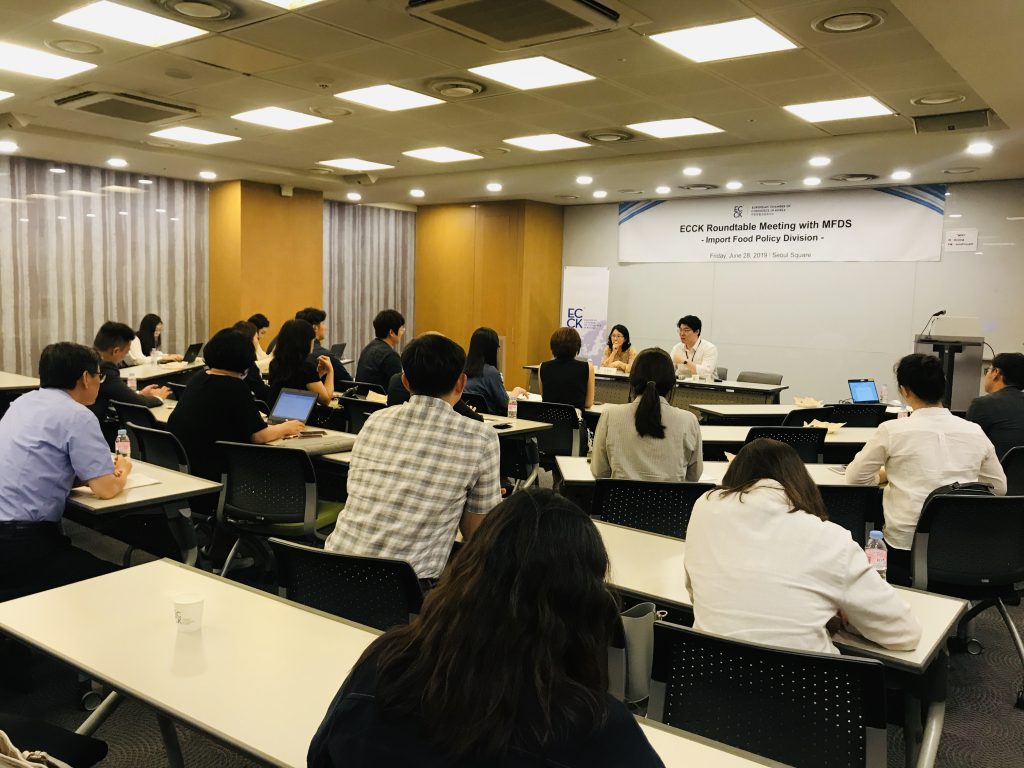 In the afternoon of June 28, ECCK hosted a roundtable meeting with the Ministry of Food and Drug Safety (MFDS) at Seoul Square. ECCK invited its Food/ Beer, Wine & Spirits (BWS)/ Kitchen & Home Appliances committee members and the trade officers from European countries to the session.