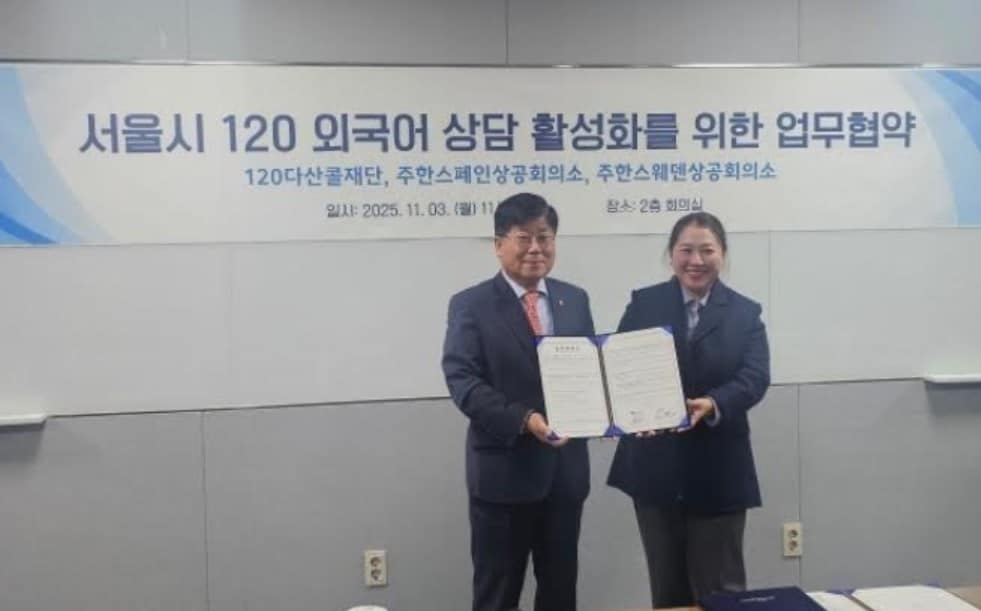 The Seoul Metropolitan Government’s 120 Dasan Call Foundation announced on the 4th that it had, on the 3rd, signed a Memorandum of Understanding (MOU) with the Spanish Chamber of Commerce in Korea and the Swedish Chamber of Commerce in Korea to promote and collaborate on foreign-language consulting services. The two parties plan to collaborate on promoting the 120 Dasan Call foreign language consulting services, sharing information to improve the lives of Spanish and Swedish businesspeople, and connecting and supporting economic and lifestyle consulting.